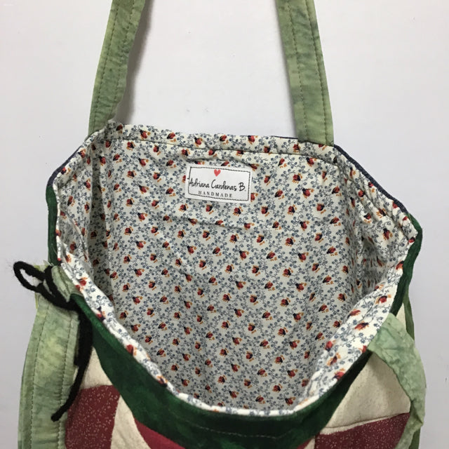 Adriana Cárdenas B. Handmade "UFO Rojo y Verde" Quilted Bag (8"W x 5"D x 12"H Bag, 21" Straps)