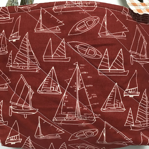 Adriana Cárdenas B. Handmade "Cornell Sailboats" Quilted Bag (9"W x 5"D x 8"H Bag, 20" Straps)