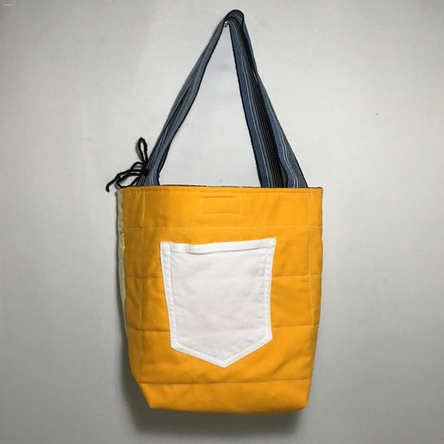 Adriana Cárdenas B. Handmade "Cuadros Azules y Amarillo" Quilted Bag w/ Exterior Pocket (7"W x 5"D x 11"H Bag, 20" Straps)