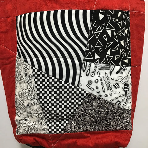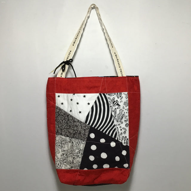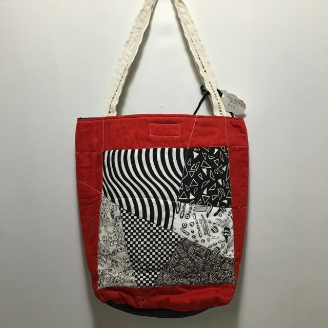Adriana Cárdenas B. Handmade "Rojo, Negro y Blanco" Quilted Bag (8"W x 6"D x 12"H Bag, 20" Straps)