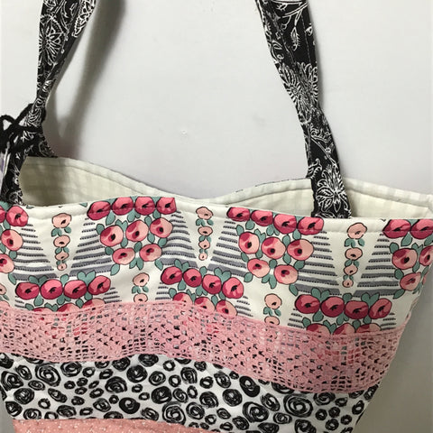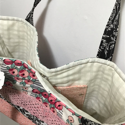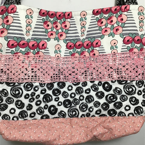 Adriana Cárdenas B. Handmade "Rosa Crochet" Quilted Bag w/ Snap Closure & Interior Pocket (9"W x 6"D x 9"H Bag, 20" Straps)