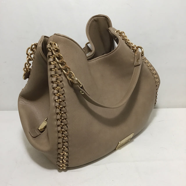 Bebe Tan Faux Leather "Colette" Triple Entry Hobo Shoulder Tote Bag (15"W x 7"D x 11"H)