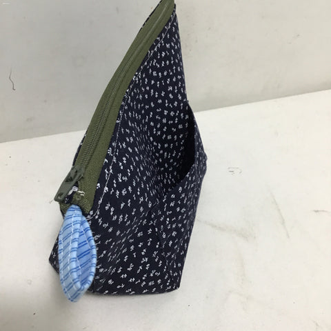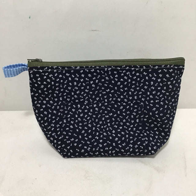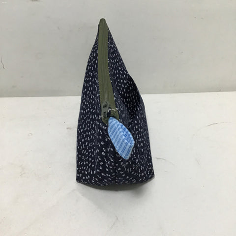 Sarahjane Harrigan Navy Blue Sewn Fabric Medium Zipper Bag w/ Exterior Pocket, Internally Lined (9"W x 3.5"D x 6"H)