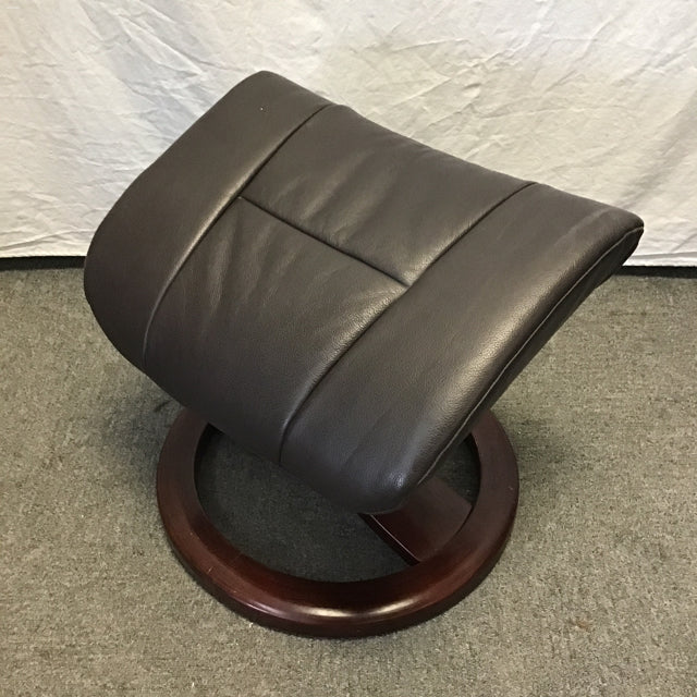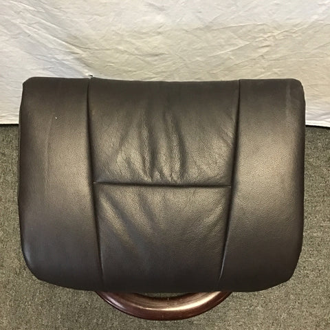 Modern Danish Modern Brown Leather & Dark-Stained Bentwood Shell Ottoman (19"W x 20"D x 17"H)