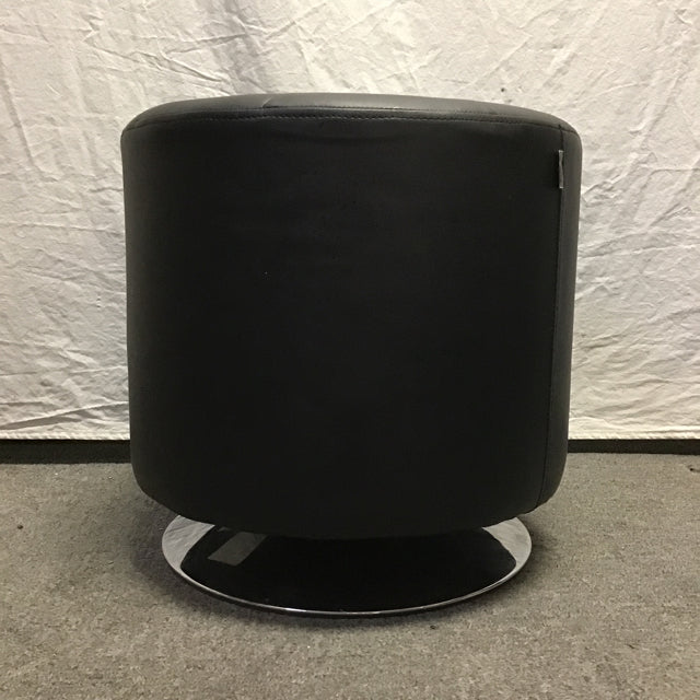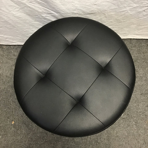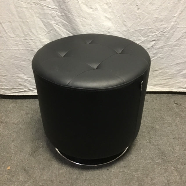 Modern MCM Black Tahari Home Black Vinyl Ottoman w/ Silver Metal Swivel Base (17"W x 17"H)
