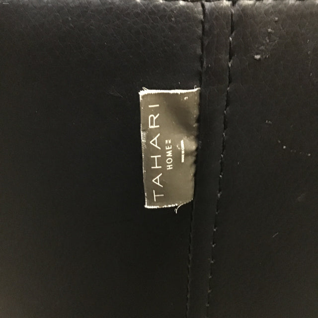 Modern MCM Black Tahari Home Black Vinyl Swivel Ottoman