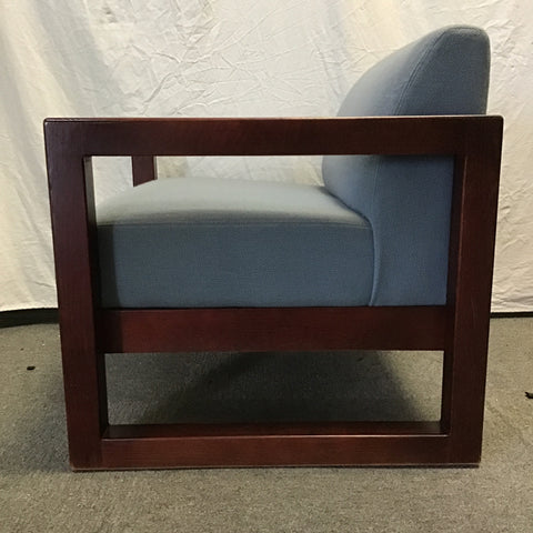 Modern Blue Upholstered Armchair w/ Dark-Stained Solid Oak Frame (29"W x 28"D x 28"H)