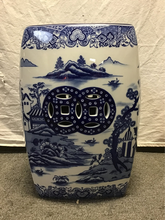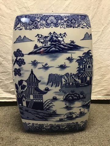 Modern Chinoiserie Pier 1 White & Blue Porcelain Garden Stool