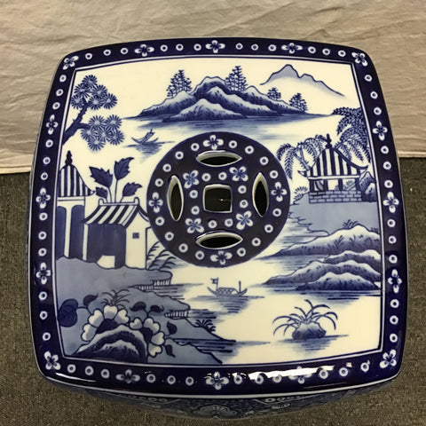 Modern Chinoiserie Square Pier 1 White & Blue Porcelain Garden Stool (12"W x 16"H)