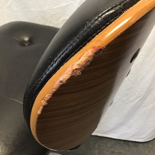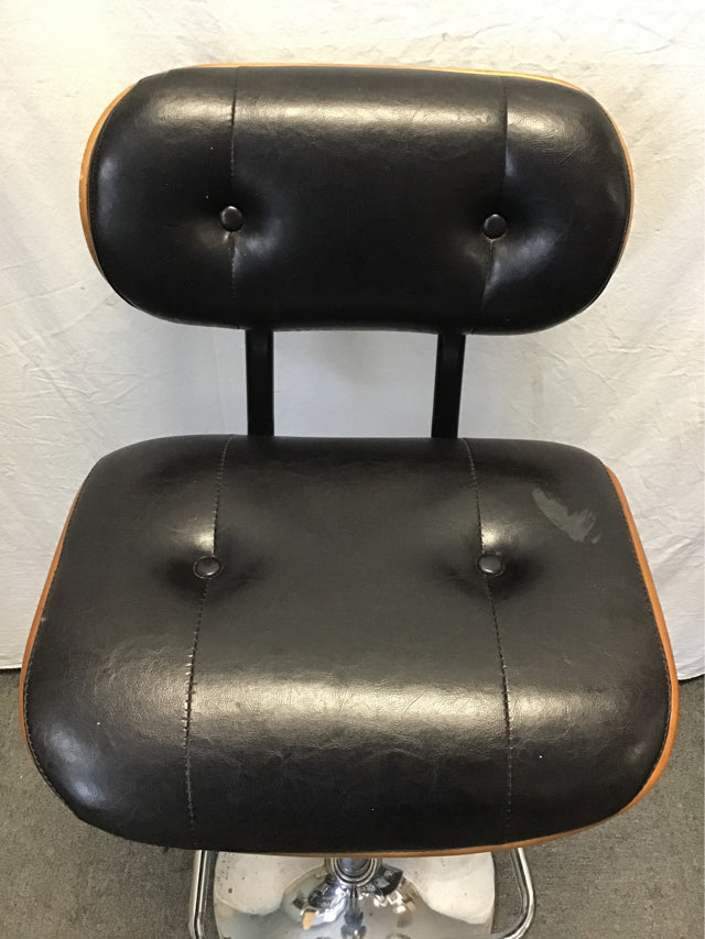 Modern Danish Modern Black Leather & Silver Metal Adjustable-Height Stool w/ Bentwood Shell [See: Wear] (Seat: 27"-35"H) (20"W x 22"D x 37"-45"H)