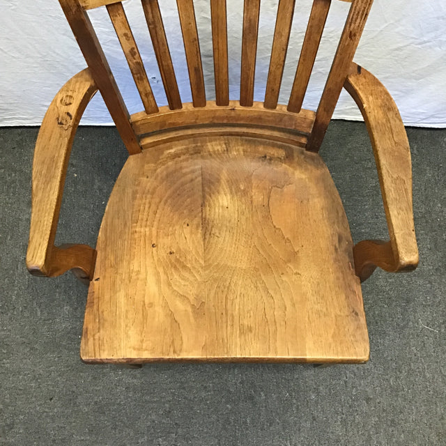 Vintage Solid Oak Slat-Back Banker's Office Chair