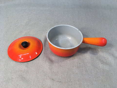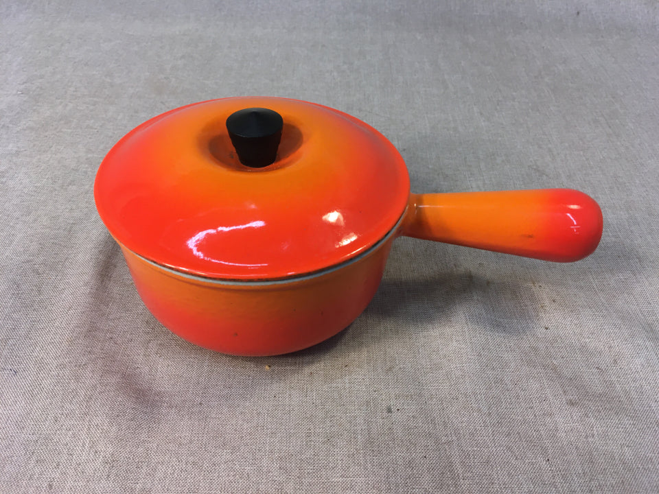 MCM Le Creuset Red-Orange Enameled Cast Iron Oven to Table #14 Pot with Lid (9"W x 6"D x 3"H)