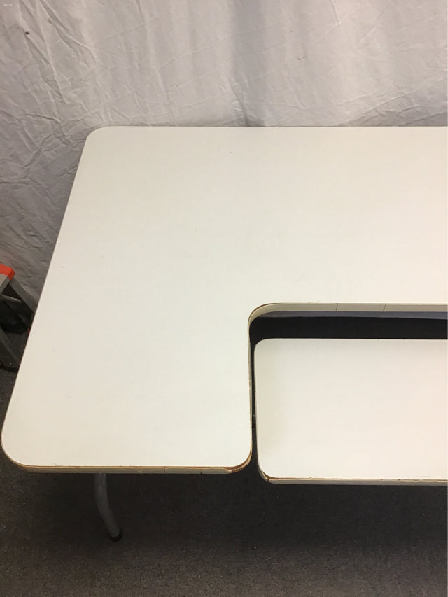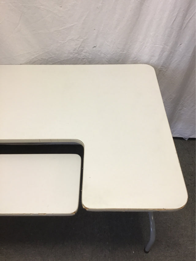 Modern White Laminate Folding Computer Desk w/ Grey Metal Legs (30"W x 48"D x 29"H)