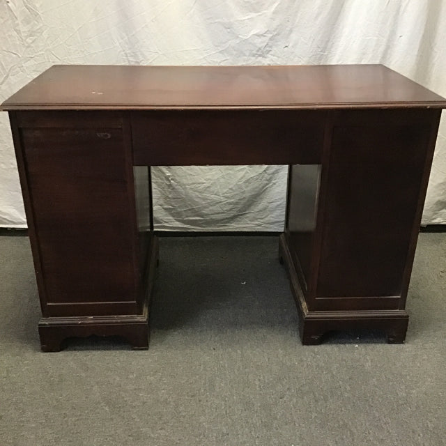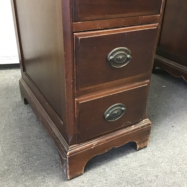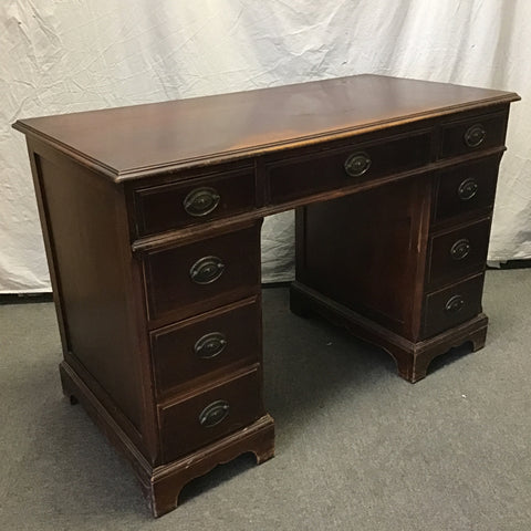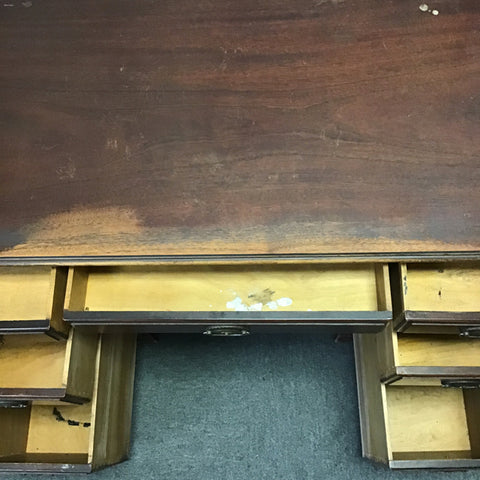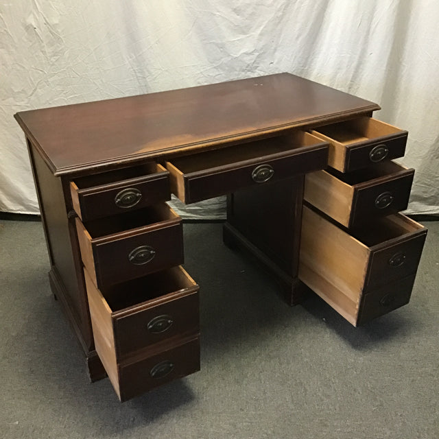 Vintage Federal Style Maddox Tables Dark-Stained Mahogany Veneer 7-Drawer Kneehole Desk [See: Surface Wear] (44"W x 22"D x 30"H)