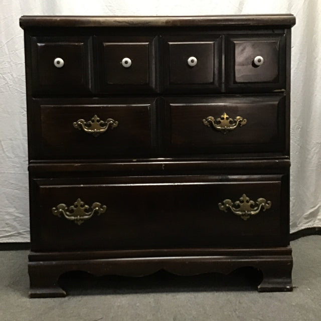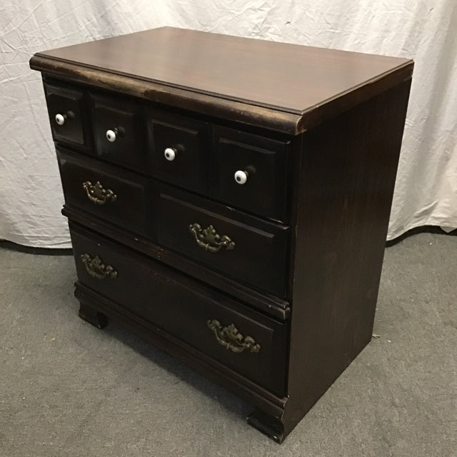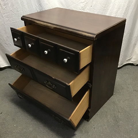 Vintage Faux-Dark-Stained-Pine Laminate 3-Drawer Dresser [See: Wear] (30"W x 18"D x 31"H)