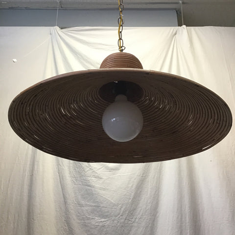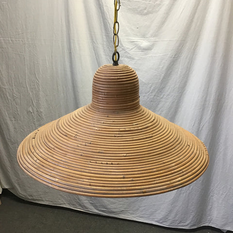 Vintage MCM Medium-Stained Rattan Hanging Swag Lamp (25"W x 25"D x 12"H + Chain")