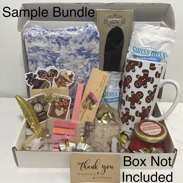 Each bundle will contain the above listed items and will be of comparable value to one another, but the specific items, designs, styles, etc. in an individual bundle may differ from the sample bundle shown in the photos. The surprise is part of the fun with these gift bundles!