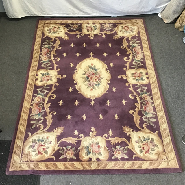 Vintage Purple & Off-White Floral 5x8 Area Rug