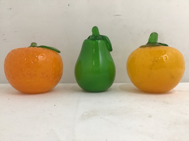 4pc Assorted Glass Fruit: 7.5" Banana, 4.5" Pear, 3.5" Orange, & 4" Orange