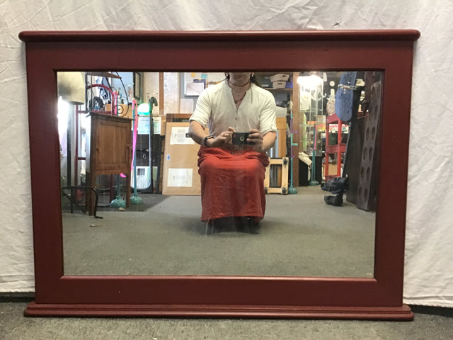 Modern Red-Painted Solid Wood Mirror (42"W x 3"D x 30"H)