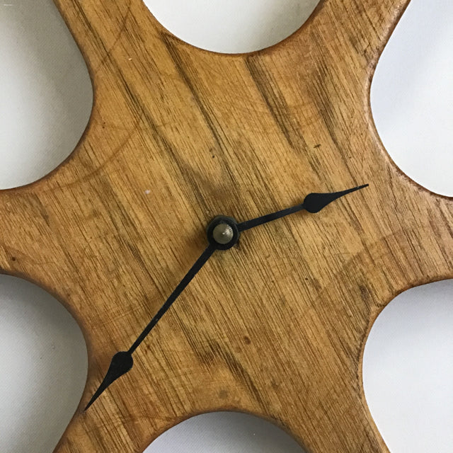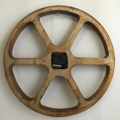 Vintage Solid Medium-Stained Solid Black-Walnut Wheel Clock (17"W x 3"D x 7"H)
