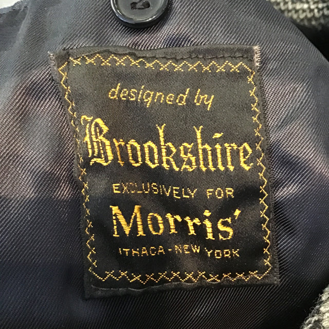 Vintage Brookshire Men's Grey & Black Wool Double-Breasted Long Coat