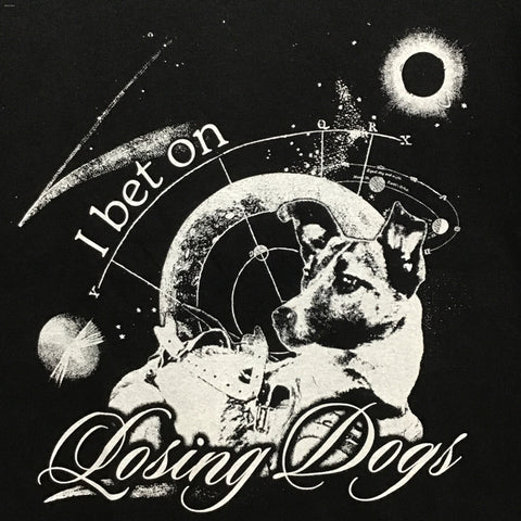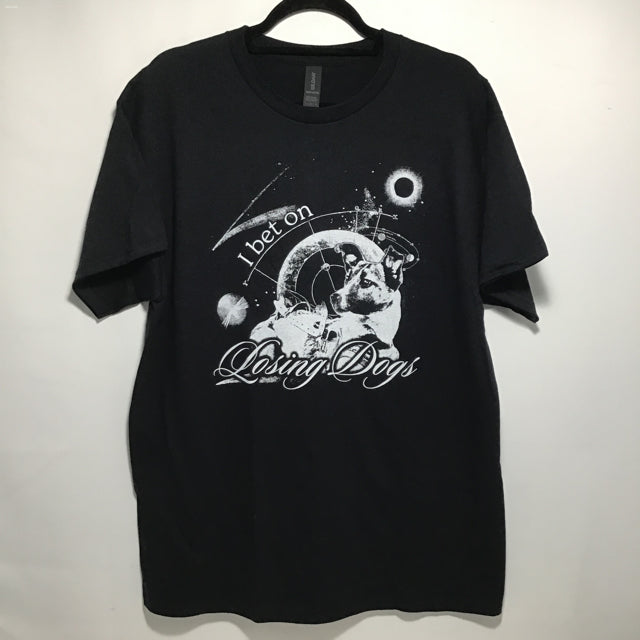 Quickdraw Studio "Losing Dogs" Small Screen Printed White Ink on Black T-Shirt