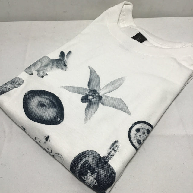 Quickdraw Studio "Trinkets" Medium Screen Printed Blue Ink on White T-Shirt