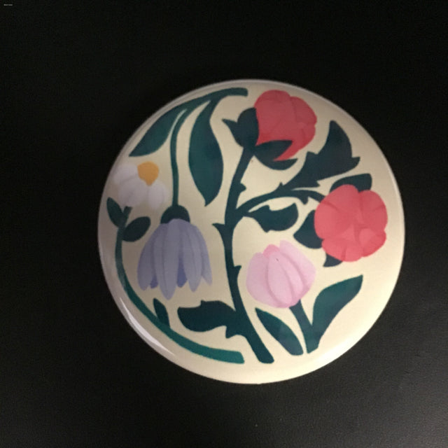 Rachel Feirman Flowers Magnet (1.75" diameter) - designed and printed in artist's home studio, printed digitally on matte paper and pressed into a metal backing with a magnet attached