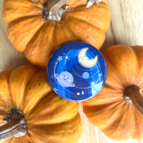 Rachel Feirman Galaxy Magnet (1.75" diameter) - designed and printed in artist's home studio, printed digitally on matte paper and pressed into a metal backing with a magnet attached