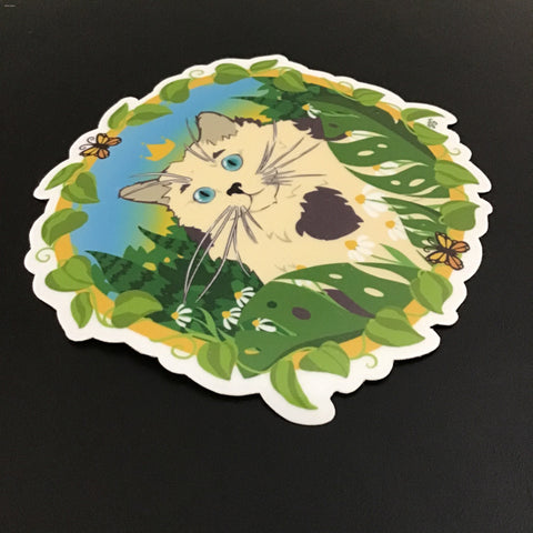Rachel Feirman Princess Kitty Sticker (3" x 3") - designed and printed in artist's home studio, printed digitally on glossy label paper and laminated for extra water proofing