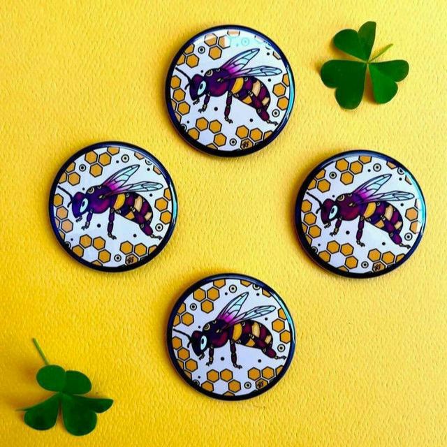 Rachel Feirman Wasp Button Pin (1.75" diameter) - designed and printed in artist's home studio, printed digitally on matte paper and pressed into a button that has an all metal pin backing