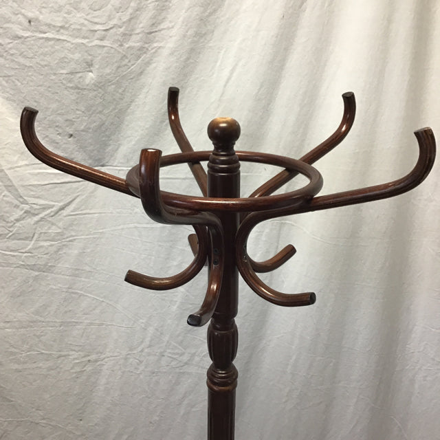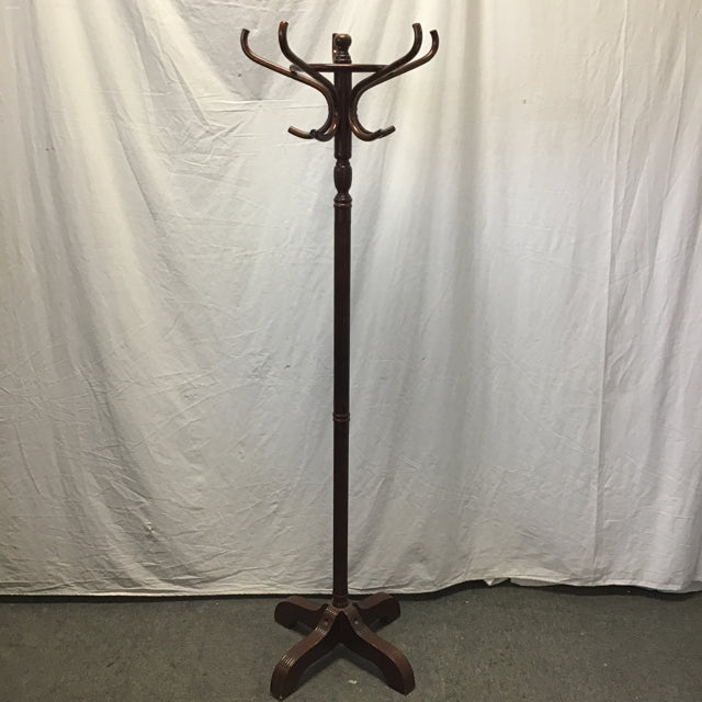 Modern Dark-Stained Solid Tropical Wood 10-Hook Coat Tree (21"W x 21"D x 68"H)