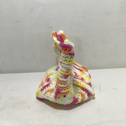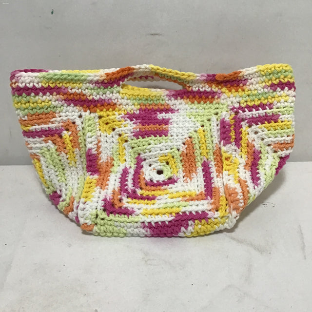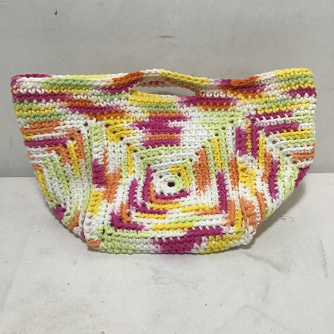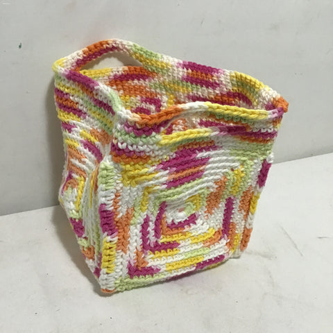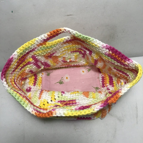 Sarahjane Harrigan Pink, Yellow, & White Crocheted Mini Tote (11"W x 5.5"D x 6.5"H)