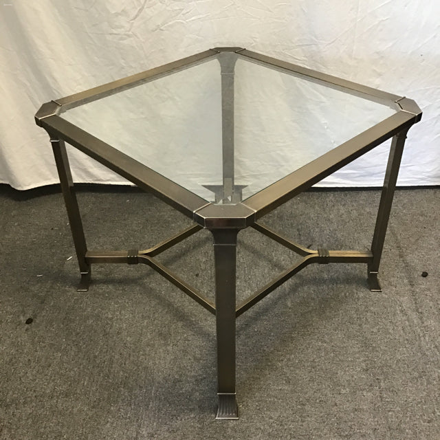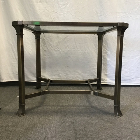 Modern Grey Metal & Beveled Glass End Table (27"W x 27"D x 22"H)