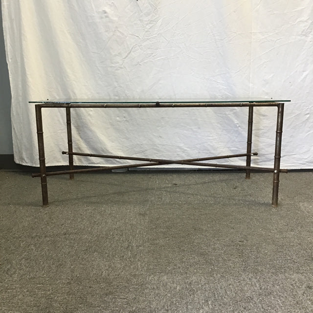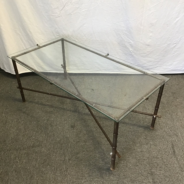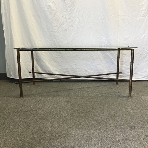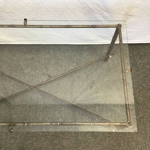Vintage Faux-Bamboo Brown Metal Coffee Table w/ Galss Top [Top Not Attached] (40"W x 21"D x 17"H)