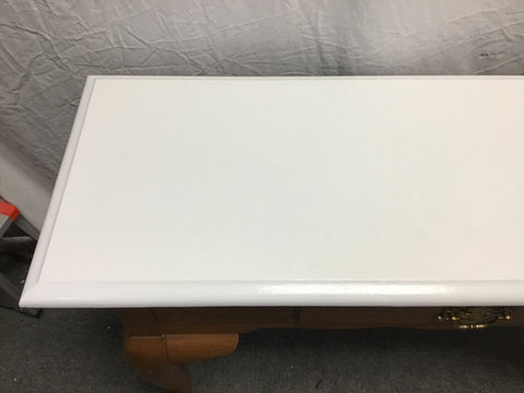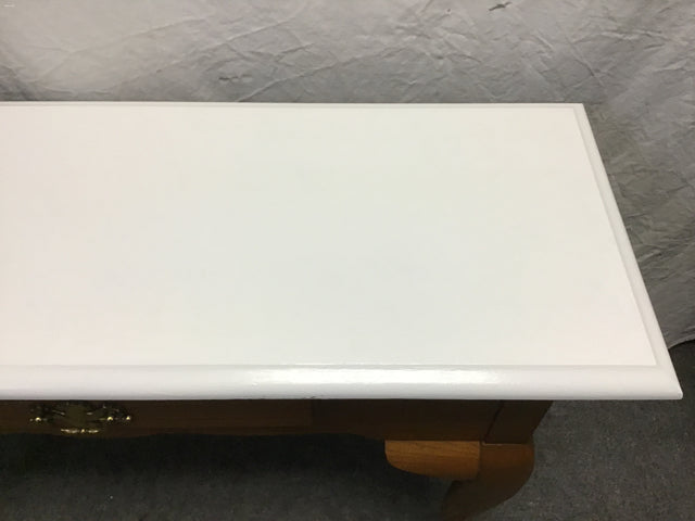 Vintage Medium-Stained Oak Laminate 1-Drawer Sofa Table W/ White-Painted Top (40"W x 14"D x 28"H)