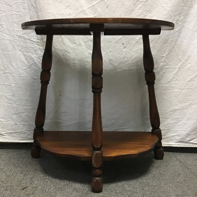 Vintage Dark-Stained Solid Cherry Colonial 2-Tier Half-Circle Side Table (24"W x 12"D x 23"H)