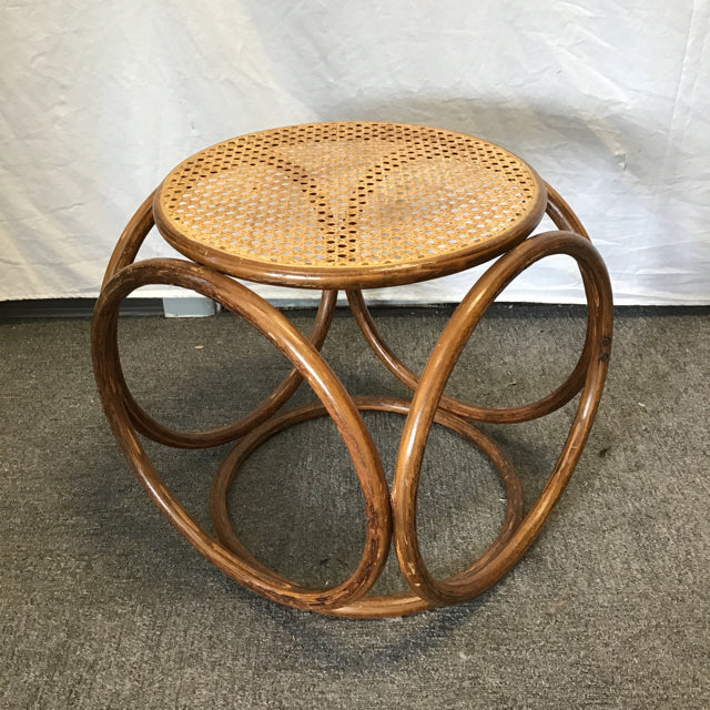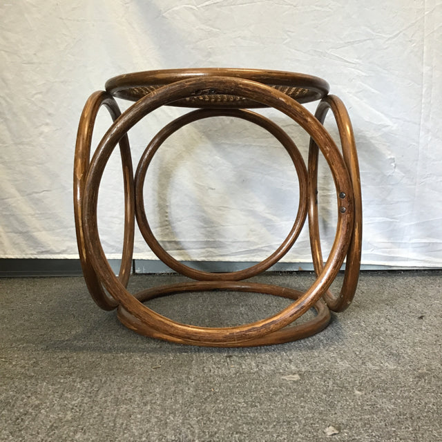Vintage Square Dark-Stained Bentwood End Table w/ Light-Stained Cane Top (16"W x 16"H)