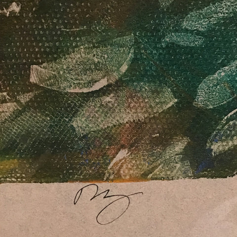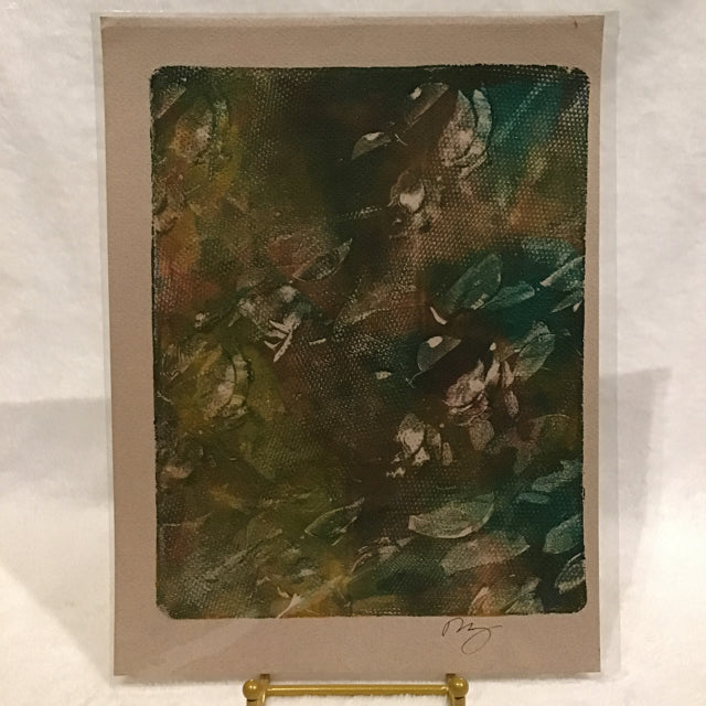 Twin Cat 9x12 Brown, Green, & Orange Leaves Signed Art Print (9"W x 12"H)