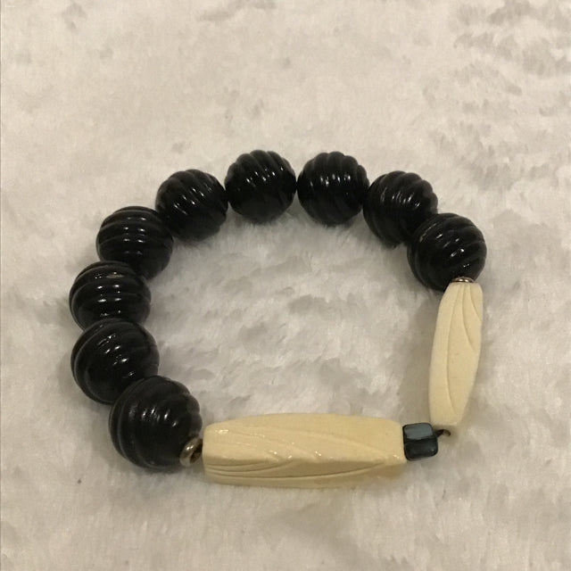 Twin Cat Black & White Beaded Elastic Bracelet (~7" Circumference)