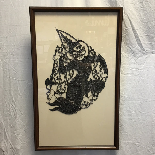 Framed Thai Nang Talung Black Leather Shadow Art (18"W x 30"H)