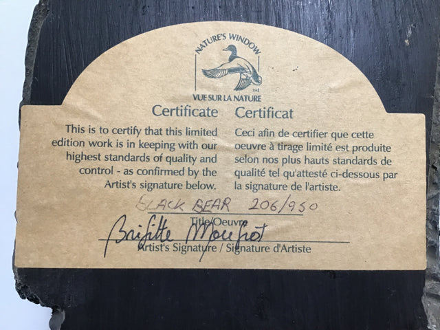 Signed Limited Edition Nature's Window "Black Bear" Coldcast Wall Hanging