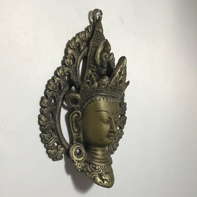 Vintage Wall Hanging Cast Brass Buddha (6"W x 2"D x 8"H)