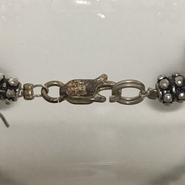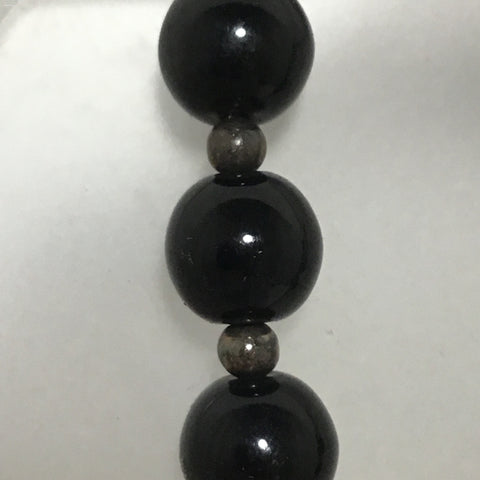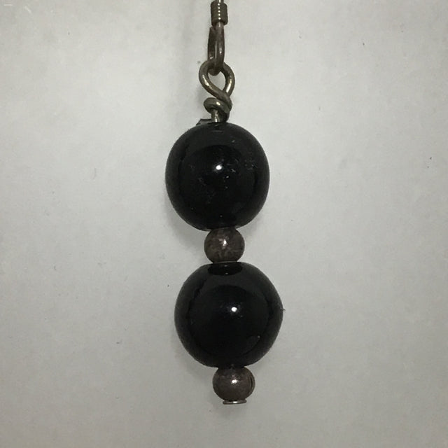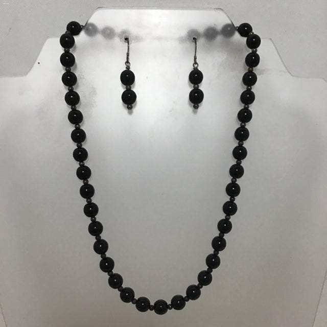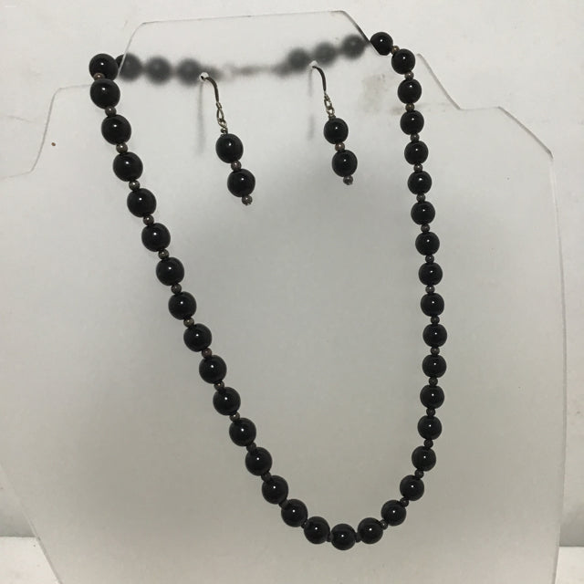 3pc Sterling Bead & Black Glass Bead 17" String Necklace & 1.5" Drop Earrings