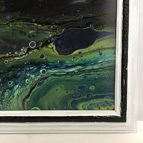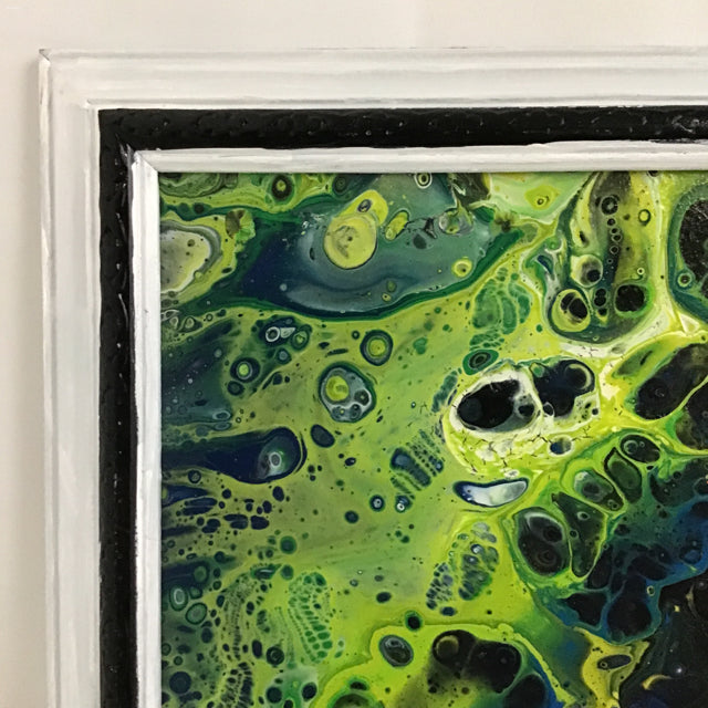 Framed Original Abstract Green & Blue Acrylic on Glass