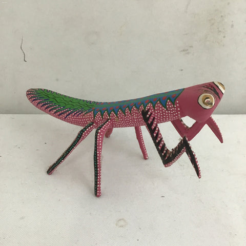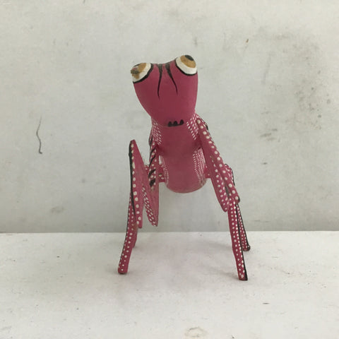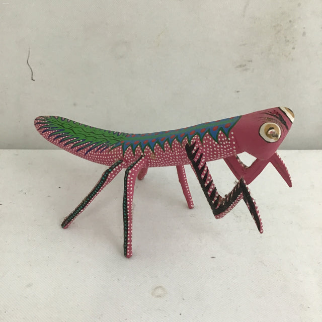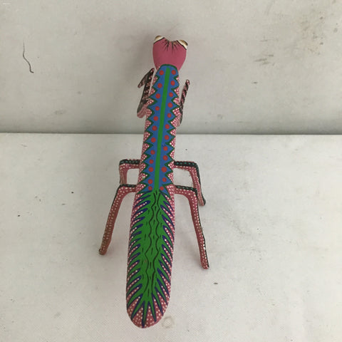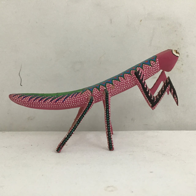 Handmade Alebrije Oaxacan Pink Hand Painted & Carved Wood Mantis [See: Missing Antennae] (2.5"W x 5.5"L x 3.5"H)