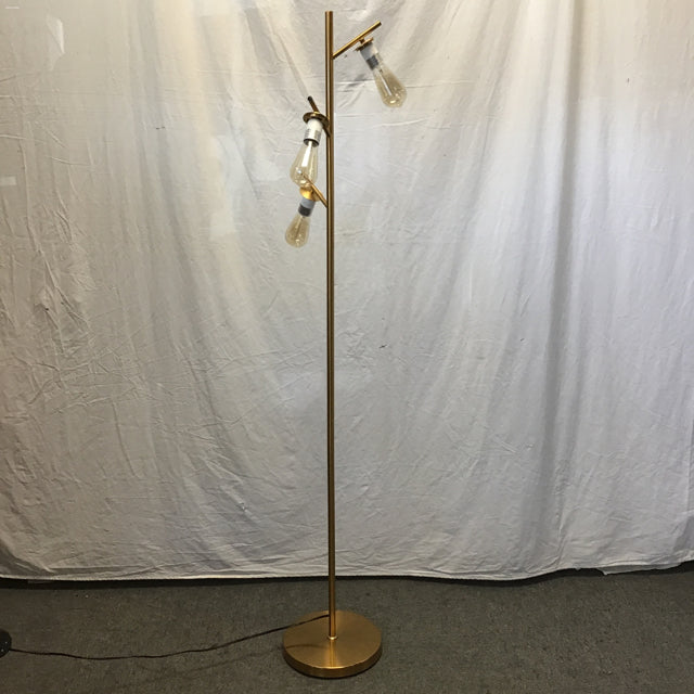 Modern MCM Bronze Metal 3-Bulb Floor Lamp (12"W x 14"D x 67"H)