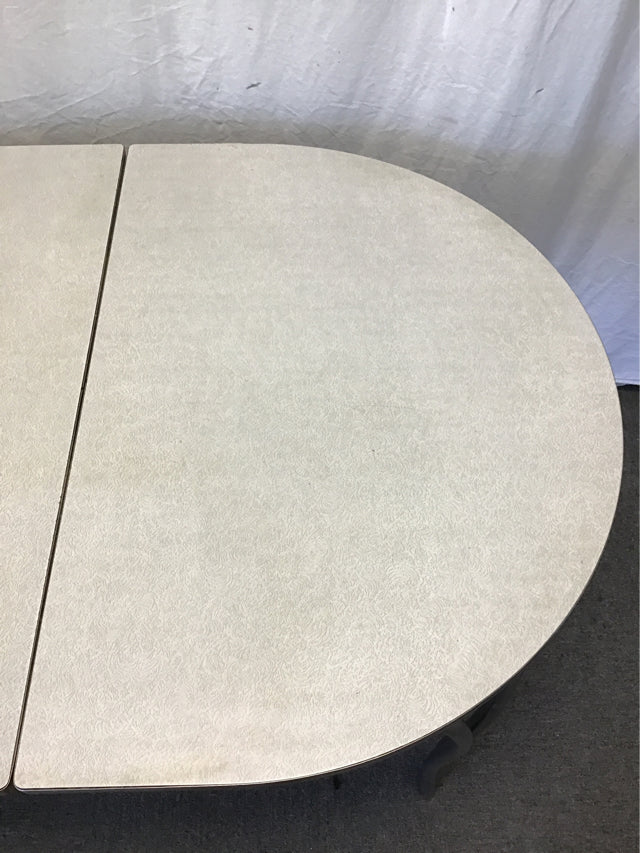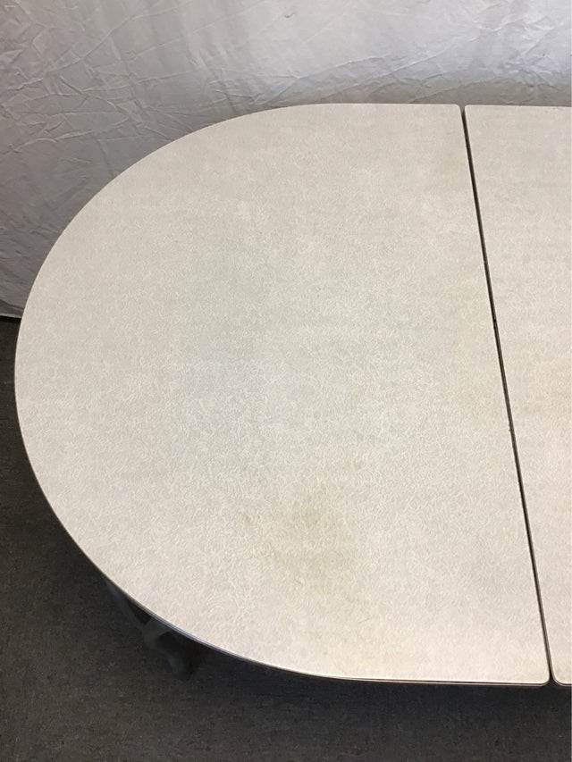Vintage Atomic Grey Formica-Top Expanding Dining Table w/ Silver Metal Base [No Leaves] [See: Light Discolouration] (35"W x 50"L x 29"H)