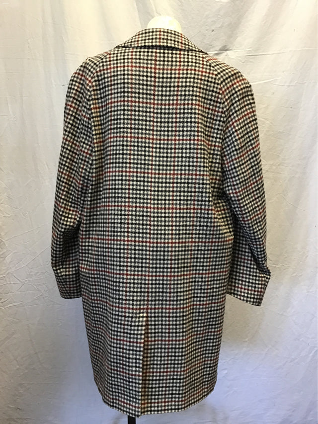 Vintage Burberrys' Off-White, Black, & Red Plaid Wool Double-Breasted Long Coat (No Size Marked)